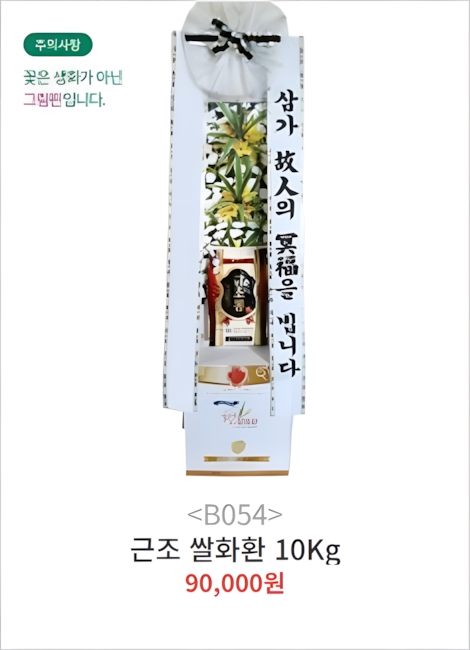 꽃의 아름다움과 쌀의 실용성을 더한 의미 있는 화환입니다. 고인의 이름으로 기부가 가능한 실속형 상품으로 21플라워에서 정성을 다해 준비해 드립니다.